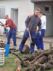 Od Jarní brigády uběhly snad jen dva týdny a opět jsme se sešli ve sportovním areálu k nesportovní činnosti. Naše zásoby dřeva do udírny se totiž zmenšily na minimum rovnající se téměř nule. Téměř náhodou se nám podařilo sehnat nějaké to suché bukové dřevo, ke kterému se přidalo něco z pokácené třešně a švestky.